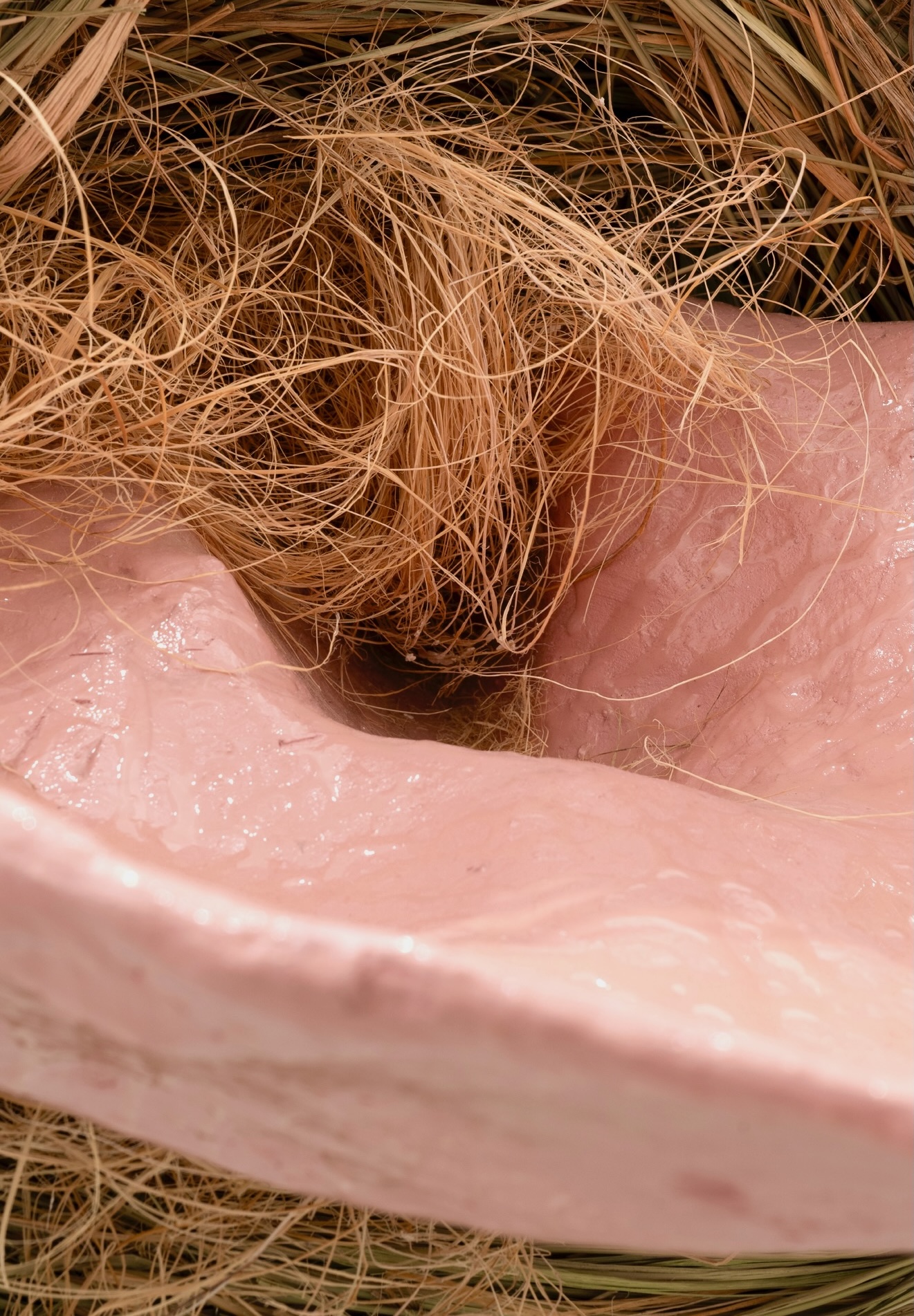 La obra parte de la propia exploración de la artista y su corporeidad, tomando muestras y moldes de sus pliegues, extremidades, llevados a una escala superior para descontextualizar atributos convencionales. Bajo una la agotadora exigencia de autodefinir nuestra identidad, nuestros límites, nuestras fronteras, nuestras interacciones como especies…la artista propone una vía formal en la que etimología y naturaleza liberan las tensiones ejercidas socialmente entre cuerpos e individuos.